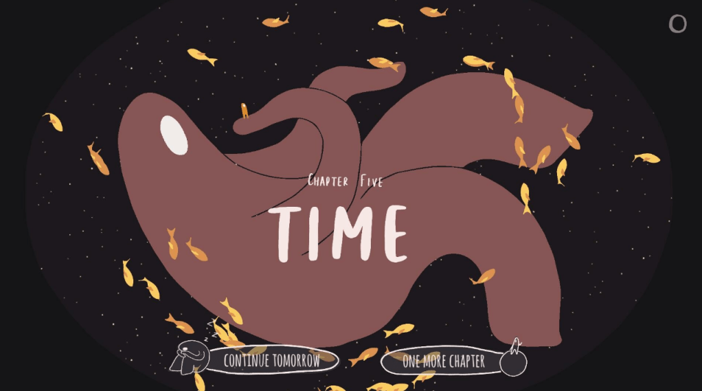 The artwork is beautiful, and perfectly suited to a bedtime story with its dark muted color scheme. All the animations are hand-drawn and give off a melancholic vibe that flawlessly expresses the storyline. The soundtrack is soothing, and created to lull you to sleep, and I loved listening to it. It was very relaxing. The animations, color scheme, and beautiful soundtrack all work in concert to create a riveting experience.